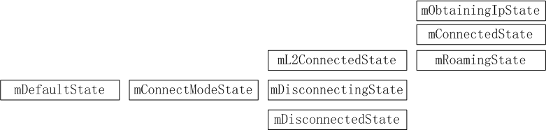 到这里,ClientModeStateMachine状态机在IdleState状态成功处理完了CMD_START消息。状态机将转到“mScanOnlyModeState”状态,将会执行以下调用流程(具体原因可查看状态机机制)。